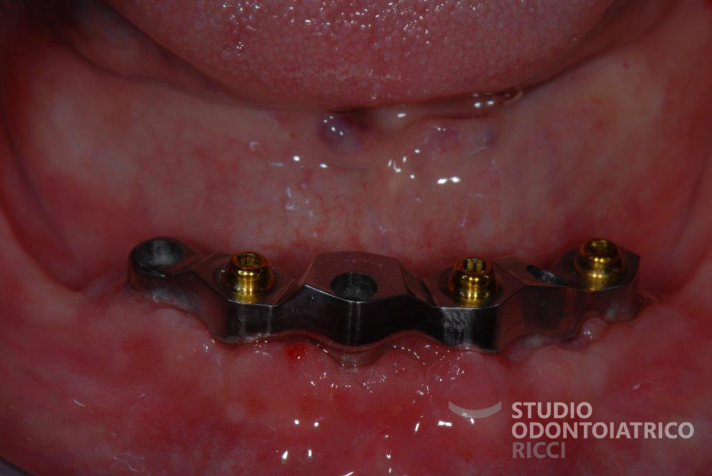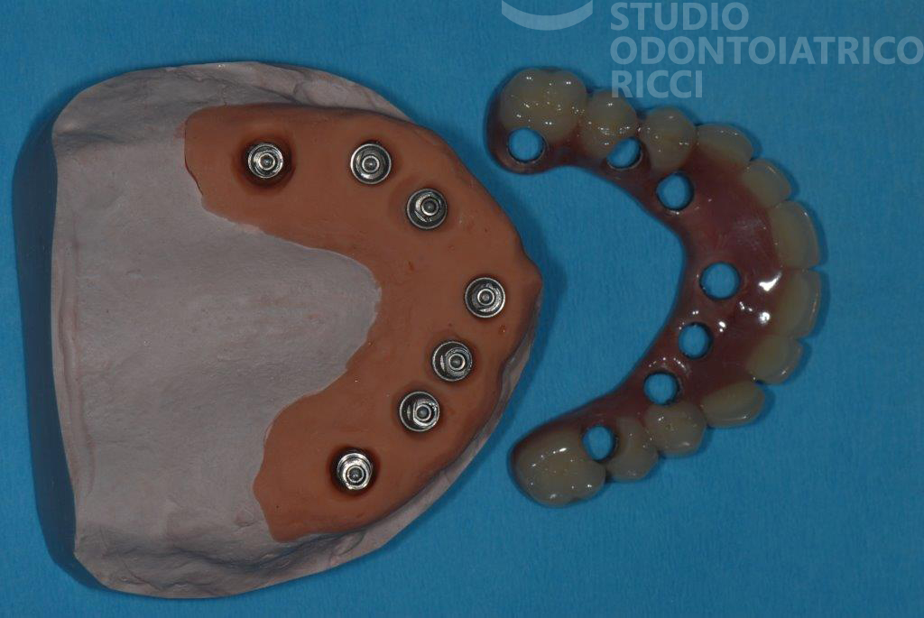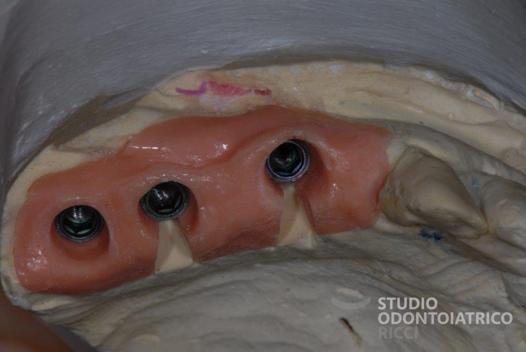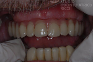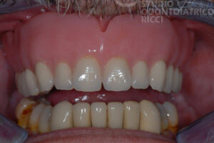Quando mancano più denti adiacenti, è possibile realizzare un ponte fisso ancorato a due o più impianti, evitando protesi mobili e garantendo stabilità e comfort.