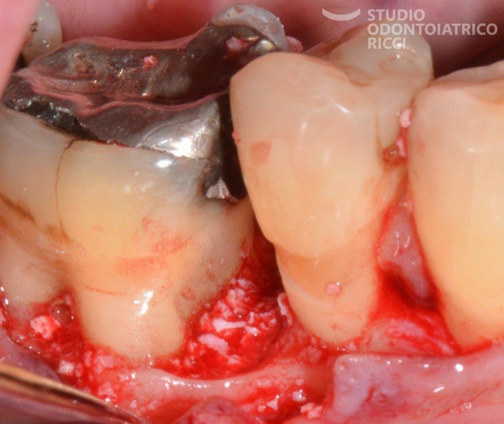 Rimodella l’osso alveolare danneggiato e consente di riposizionare la gengiva in modo più funzionale, facilitando la pulizia e riducendo la profondità delle tasche gengivali.